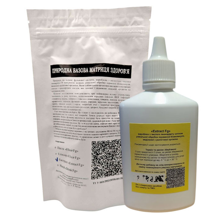 ЭКСТРАКТ Fg — это натуральный концентрированный комплекс гуминовых веществ, изготовленный из экологически чистого леонардита путем уникальной обработки первичной биомолекулы, выделенной из реликтовой органики. Основным компонентом его является фульвовая кислота, в состав которой по результатам исследований входит практически весь набор необходимых для жизнедеятельности живого организма веществ. Она содержит 74 органических минерала, 10 витаминов, 18 аминокислот.и другие полезные компоненты.